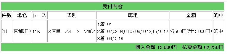 菊花賞 1万2450円的中(大勝負指定レース)